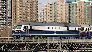 The latest version of the design is the DF11G, another single cab, twin unit machine with a more rounded streamlined front end, a flashier blue and white livery and an auxiliary generator to supply "hotel" power to the train. They have the same power output and maximum speed as the standard DF11 and can be found working principal expresses between Beijing and Shanghai.