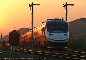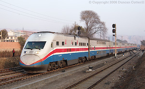 China even has a few diesel unit trains. I hesitate to use the usual term, DMU, because multiple working is exceptional in China. The first unit was produced as early as 1958 but the concept didn't catch on. It wasn't until the turn of the century that units were built in any quantity. The trains produced to date have had two power cars with a number of unpowered trailers in between. Units still work very few passenger services in China and the vast majority of passenger trains are still locomotive hauled.
